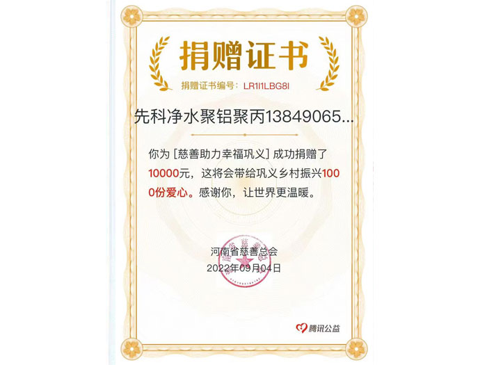 鞏義市先科凈水材料廠始建于1995年,20多年來先科人始終以凈化水源,造福人類為己任,堅持誠實(shí)守信,拼搏創(chuàng)新的精神,滾動發(fā)展。共有職工50名,年產(chǎn)各種凈水材料5萬噸,產(chǎn)值上億。
